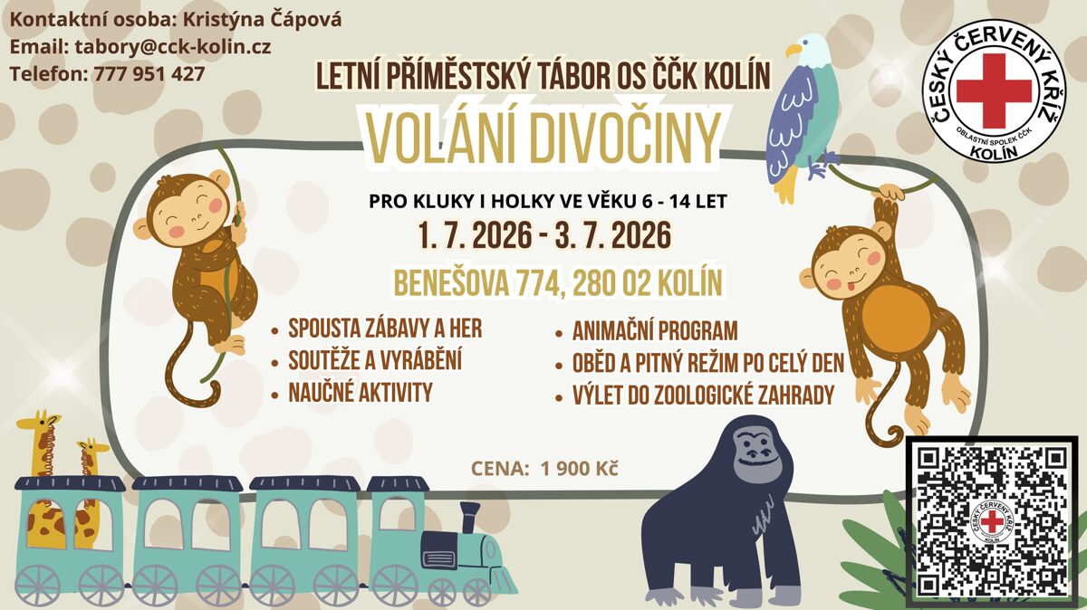 | Příměstský tábor LÉTO 2026 Benešova 774, Kolín | ![]() | EL. PŘIHLÁŠKA: volání divočiny |