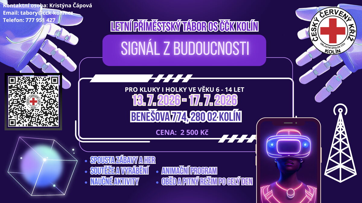 Příměstský tábor LÉTO 2026 Benešova 774, Kolín | ![]() | EL. PŘIHLÁŠKA: signál z budoucnosti |