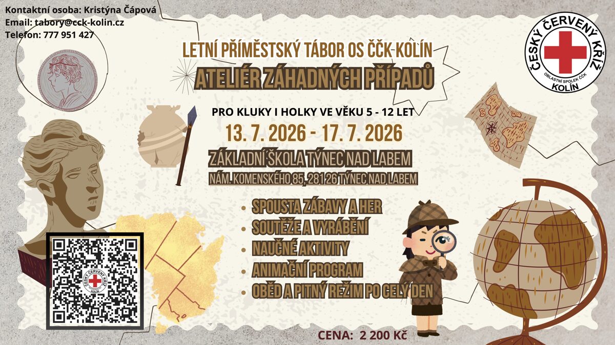 Příměstský tábor LÉTO 2026 Benešova 774, Kolín | ![]() | EL. PŘIHLÁŠKA: případ ztracená stopa |